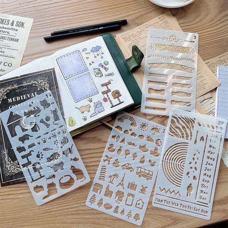 Ezzel a 12 darabos sablon készlettel, egyedivé teheted a legunalmasabbnak kinéző füzetet is!