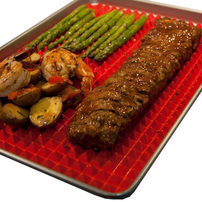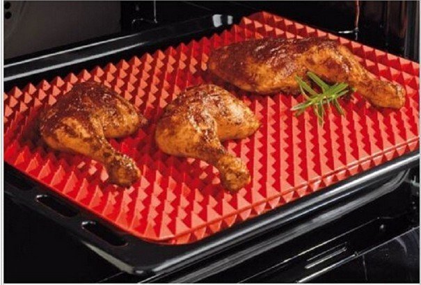 Ezzel a kütyüvel megteheted! Felejtsd el az olajban, zsírban tocsogó ételeket, elhoztuk Neked a tökéletes sütőlapot. A kis piramisformák elvezetik az esetlegesen kisülő zsírt és lecsöpögő nedveket miközben elősegítik a forró levegő áramlását, ami lehetővé teszi, hogy az étel alulról is átsüljön, de ne égjen oda. Az eredmény pedig puhább, ropogósabb és egészségesebb étel, amire mindig is vágytál!