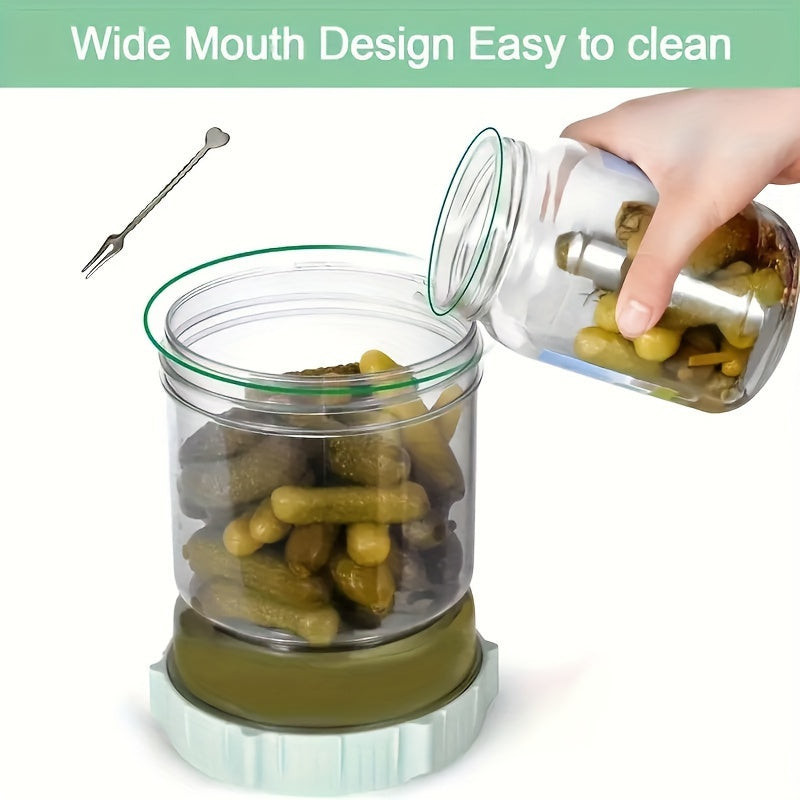 Szivárgásmentes Savanyúság Tartó Villaval - Nagy Kapacitású, Könnyen Tisztítható ABS Élelmiszertároló Edény Savanyúságokhoz