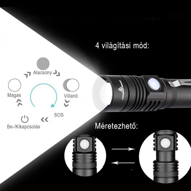 Négy átlagos zseblámpa erejét hordozza magában, így magabiztosan vághatsz neki a legdurvább terepnek is. Alkalmazása közben többféle világítási funkció közül választhatsz: alacsony, magas és villanó fény.