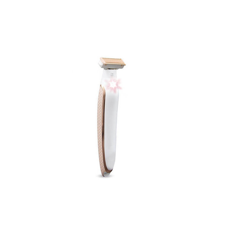 Egy elegáns test epilátor minden nőnek és minden bőrtípusnak! Gyengéd, eltávolítja a felesleges szőrt, és a bőrt sima és puha tapintásúvá teszi. Az epilátor naponta használható szükség szerint. Ideális a legérzékenyebb testrészekhez, mint a bikini, hónalj, térd és bokaláb. Az epilátor nem irritálja a bőrt, és nem vág, mint a hagyományos borotvák. Beépített fényének köszönhetően még gyenge fényviszonyok mellett is alaposan epilálhatsz. A beépített újratölthető akkumulátornak köszönhetően mindig magaddal viheted az epilátort, és mindig élvezheted a selymesen sima bőrt. Az epilátor cserélhető betétekkel rendelkezik: 0,5 mm, 0,3 mm, 0,0 mm.