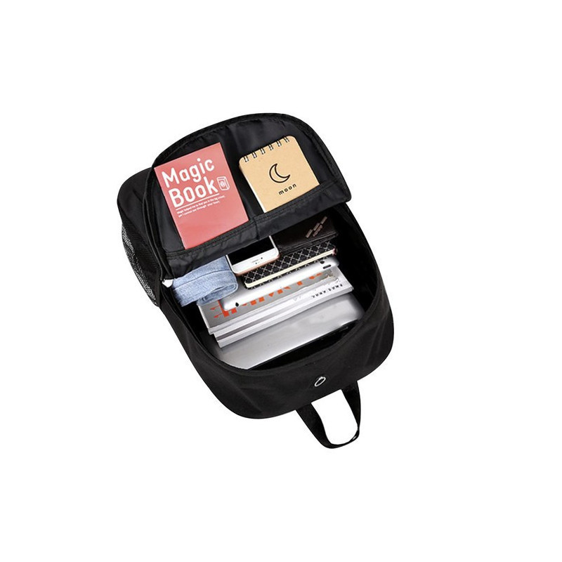 Praktikus és tágas modell, elöl cipzáras zsebbel, oldalt pedig két zsebbel, például italos palackok számára. Egy nagy rekesszel rendelkezik, kettős erős cipzárral, és négy kisebb zsebbel, köztük egy cipzárassal. A hátizsákhoz jár egy tolltartó, ami mini neszesszerként is használható, valamint USB és mini jack kábelek. A szett része egy kombinációs lakat is, ami jól jön az iskolában vagy utazáskor.