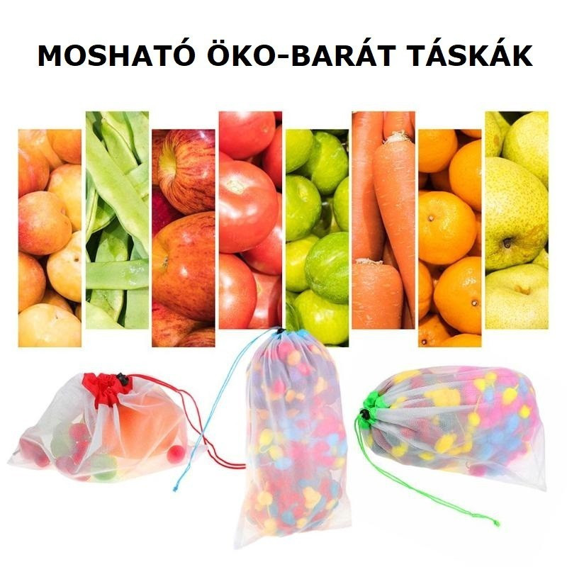 - 3 db kicsi, 6 db közepes és 3 db nagy méretű hálós táska