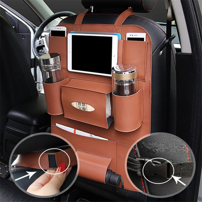 A háttámlavédő és rendezőnek hála utasaid biztonságosan tárolhatják használati eszközeiket úgy, hogy közben minden tárgy kézközelben marad. A termék helyet biztosít telefonnak, tabletnek, palackoknak és még egy esernyőnek is. Felhelyezve egyáltalán nem zavaró és nem vesz el helyet az utastérből sem.
