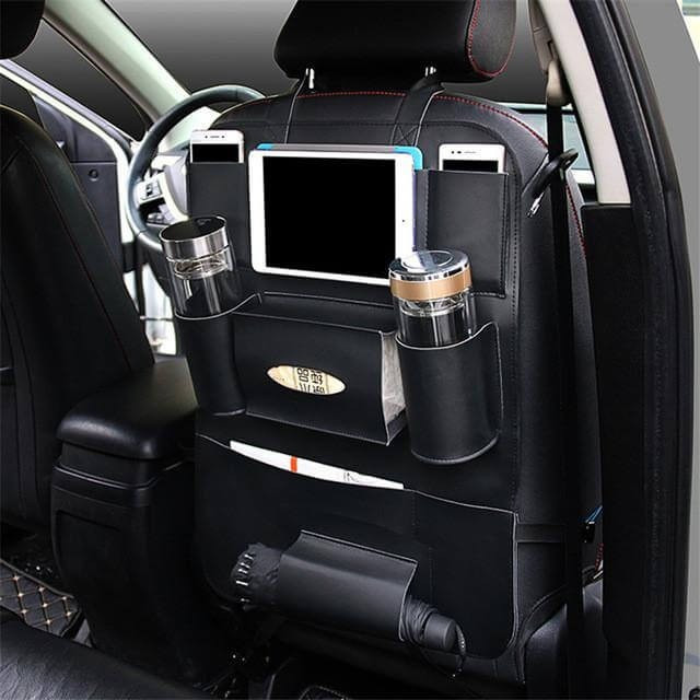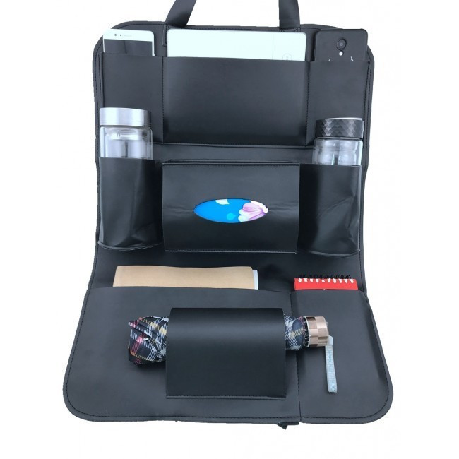 A háttámlavédő és rendezőnek hála utasaid biztonságosan tárolhatják használati eszközeiket úgy, hogy közben minden tárgy kézközelben marad. A termék helyet biztosít telefonnak, tabletnek, palackoknak és még egy esernyőnek is. Felhelyezve egyáltalán nem zavaró és nem vesz el helyet az utastérből sem.