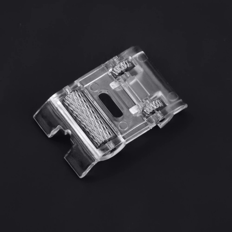 Vannak szövetek, amelyekkel egyszerűen nem boldogul a varrógép. Ez a görgős nyomótalp felülről is rásegít az anyag továbbításához. Mind a profi, mind a hobbi varróknak nagy segítséget fog jelenteni egy ilyen kütyü.