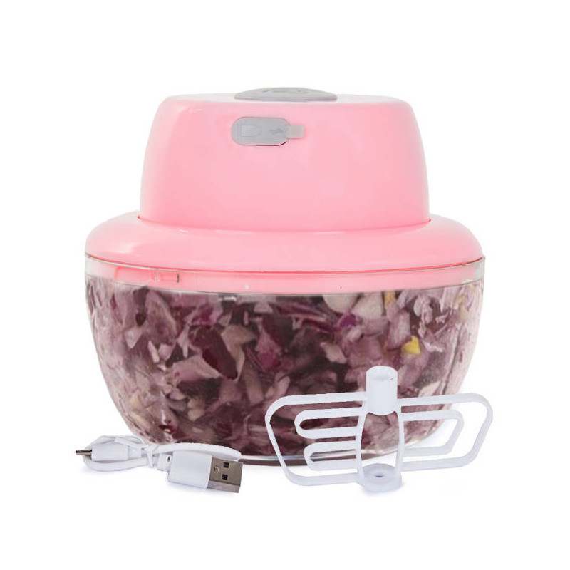 Elektromos hagyma- és fokhagymaaprító keverővel! Ez az elektromos aprító elengedhetetlen kiegészítő minden konyhában és olyan helyeken, ahol korlátozott a hozzáférésünk az állandó elektromos csatlakozáshoz, például kempingezés közben. Az innovatív, de egyszerű hajtóműnek köszönhetően gyorsan fel lehet aprítani zöldségeket, gyümölcsöket, diókat és fűszernövényeket. A keverőbetéttel készítsd el kedvenc mártásodat vagy krémedet az ételeidhez. Az aprító újratölthető akkumulátorral van ellátva, amit USB kábellel lehet tölteni, ami egy normál töltőhöz vagy powerbankhez csatlakoztatható. Az eszköz nagyon egyszerű használni és könnyen tisztán tartható. Amikor az eszköz töltés alatt van, a gomb pirosan világít. Amikor az akkumulátor teljesen feltöltődött, zölden világít.