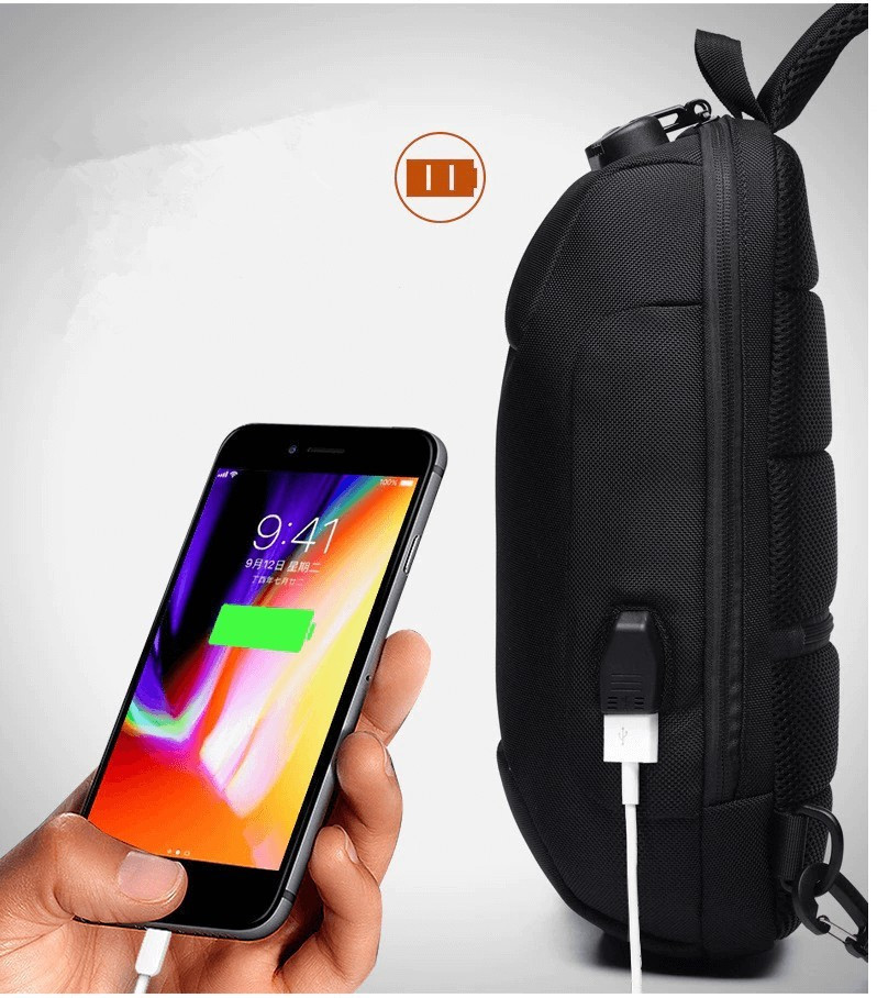 Ez a hátizsák pont erre lett kitalálva. Számkódos biztonsági zárral van lezárva (alapértelmezett 0-0-0, melyet megváltoztathatsz), illetve USB porttal is el van látva. Attól sem kell tartanod, hogyha elkap az eső elázik mindened a táskában, hisz vízálló anyagból készült. Puha, légáteresztős anyagból van a vállpánt, hogy viselése kényelmes legyen hosszútávon is.
