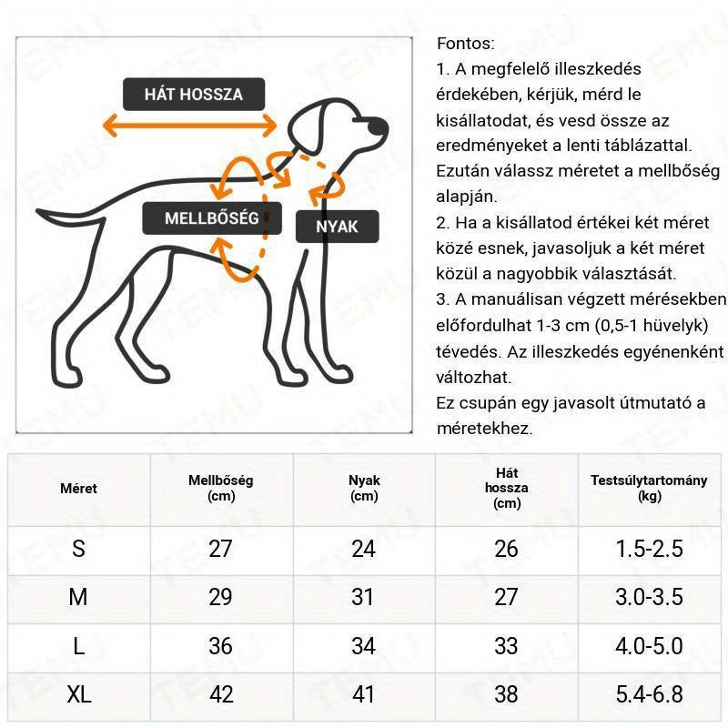 Ha szeretnéd, hogy a kutyád a hideg időben is boldogan élvezze a szabadban töltött időt, akkor ez a kabát a tökéletes választás. Nemcsak melegen tartja őt, hanem stílusos megjelenést is biztosít, ami garantáltan elnyeri mindenki tetszését. Az ergonomikus kialakításnak köszönhetően a kutyád szabadon mozoghat, miközben a puha gyapjú anyag maximális kényelmet nyújt. Ne hagyd, hogy a hideg idő korlátozza a közös kalandjaitokat – válaszd ezt a kabátot, és élvezzétek együtt a tél minden pillanatát!